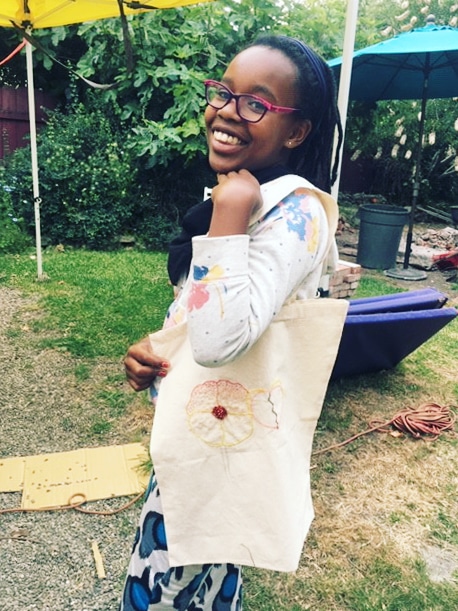 “My daughter loved her Virtual Textiles & Fiber Arts class. I was impressed with the box of quality materials that were shipped to our home before the first class. My daughter was really inspired by the several different techniques she learned. She especially loved learning embroidery and creating her own embroidered tote as one of the class projects. But the most amazing part was that she then started right in on embroidering her own clothes. And she even embroidered one of my shirts to give me as a Mother’s Day gift. Thanks to all of you at Dragonfly Designs for creating such seamless and engaging online classes that spark my kids’ creativity! We’re looking forward to taking more!”